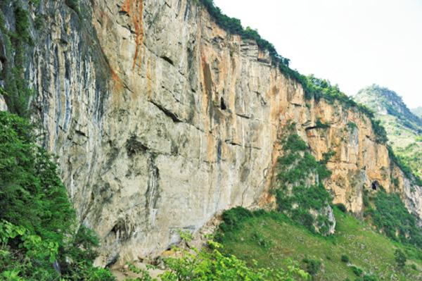 大红岩,位于北盘江下游河段西岸的贞丰县沙坪乡石柱村南2公里处,整座山崖陡峭、平整而略呈弧形,从西北至东南宽约400米,平均高达180米,因拥有几大片灰红色的岩壁而得名。自古以来,这里由于有众多峰峦环绕,岩下为一深陷凹地,且流淌着一条海子河,地势十分险峻,成为连当地村民也望而生畏、不致轻易前去的地方。或许正是因为如此,才较好地保存了如此丰富的神秘岩画。