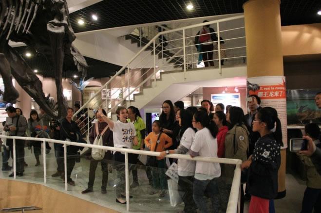 此次活动主要集中在10月3日,工作人员将事先准备好的馆内介绍及展品信息二维码分发给参观的游客,并组织了中、英文的精品讲解。古动物馆的王帅及美国留学生志愿者赵竹婷(Christine Chambers)披挂上阵,带领百度百科活动的参与者们开始了一次脊椎动物演化的探秘之旅。
