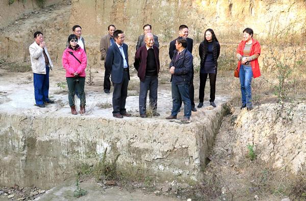 吴新智院士(前排中间)在灵井许昌人遗址,前排左为河南省文物考古研究院贾连敏院长,右为许昌人发现者李占扬研究员