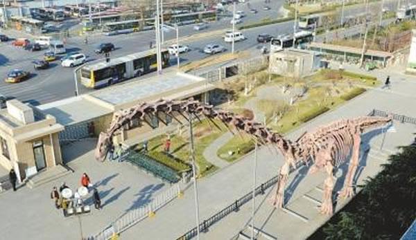 河南省地质博物馆馆长蒲含勇介绍说,此次展览由北京自然博物馆、河南省地质博物馆联合主办,河南省地质博物馆出品,啄木鸟科学小组承办,展览日期从12月2日至明年4月19日,前后近5个月。此次展览中最引人注目的,莫过于首次到北京“做客”的“巨型汝阳龙”复原骨架,它屹立在北京自然博物馆大门口附近,体长38.1米,头部离地面14.5米。