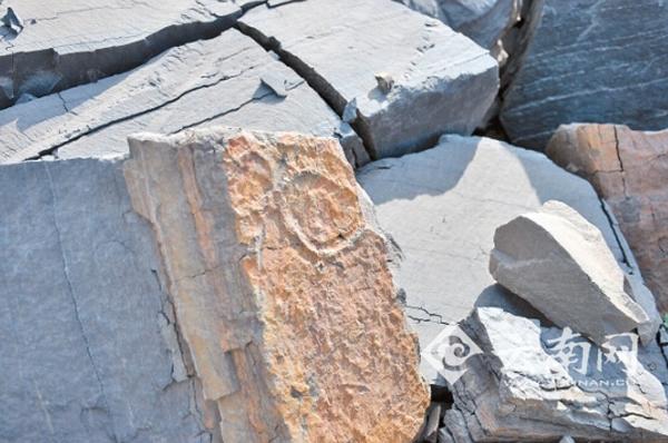 矿区路边的石头也能见到化石痕迹