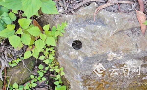 做古地磁场研究采样留下的圆孔