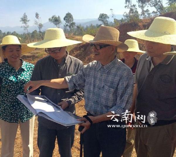 5月5日,古人类学专家周国兴(左三)等在元谋县元谋人遗址进行实地考察。