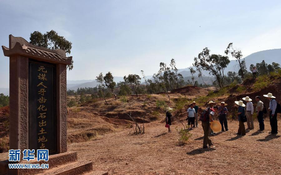 5月5日,专家学者在“元谋人”牙齿化石出土地点考察参观。