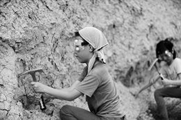 学会方法后,孩子们立刻行动。每人捡了一块岩石敲打起来。现场响起清脆的敲击声。“老师,怎么敲了半天什么都没有?”敲了一会儿,没有收获,很多孩子着急了。“采集化石不仅要感兴趣、能吃苦,还得细心、耐心,继续找,不要着急。”李士杰安抚大家。
