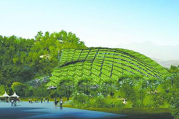 方案以《周口店遗址保护规划》为指导,立足遗址保护,本着“最小遮盖、消除隐患、融入自然”的设计原则,拟在猿人洞搭建覆盖面积3700余平方米的保护棚。保护棚南北跨度77.5米,东西跨度54.5米,最大高度达35.7米,采用空间单层网壳钢结构,并以覆盖所需最小面积及高度进行体量设计,力图最小化对遗址本体的干预,通过内外两层屋面的叠合设计隔绝雨、雪、冰雹、阳光等自然因素对遗址本体的直接作用,在对猿人洞进行有效保护的同时,确保建筑设计与遗址环境相协调。