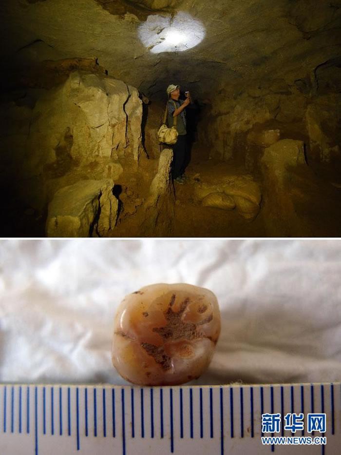 这是记者近日探访湖南省道县福岩洞的情形。中国科学院多位研究员与湖南多位考古专家日前联合在英国《自然》杂志发表论文,宣布在湖南省道县乐福堂乡福岩洞古人类遗址发现47枚具有完全现代人特征的人类牙齿化石,表明8万至12万年前,现代人在该地区已经出现。