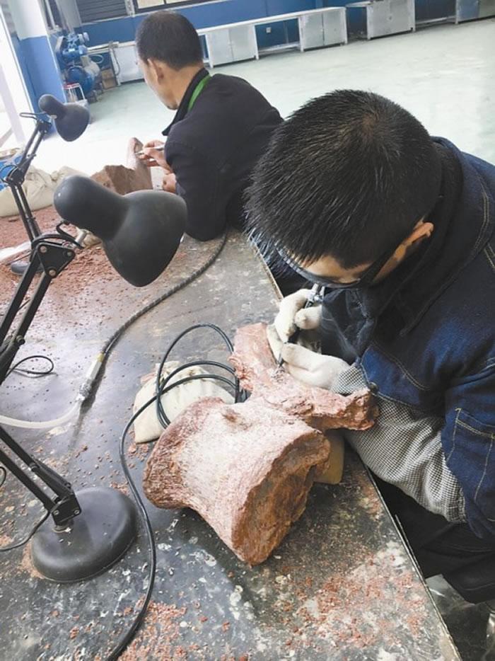 除了承接修复订单,天演博物馆还要向全国各地输出技术和劳务。馆长王小兵告诉记者,自己的技术团队与国内大部分自然、地质类博物馆开展过合作,像成都理工大学博物馆、合肥古生物博物馆、重庆自然博物馆、国家海洋博物馆等,为他们提供标本的整理、修饰、装架等技术服务。“有时候,还会接到高校和科研机构的邀请,和他们一起开展野外考古项目合作。”