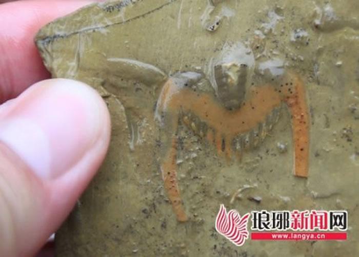 曹善东教授发现的红色三叶虫化石较少见。