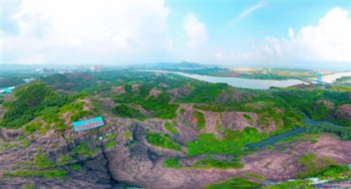 拥有“三位一体”恐龙地质遗迹的河源恐龙化石省级自然保护区。该自然保护区位于源城区源南镇风光村石峡一带,总面积1.3平方公里,2014年底获省政府批准设立。记者 肖斌 航拍