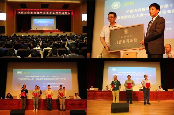 开幕式上,举行了授牌和颁奖仪式。学会授予大庆市博物馆“中国古脊椎动物学会科普教育基地”称号,以表彰其在全面推动第四纪古生物化石系统保护收藏、展览教育、科学研究方面的突出表现。为弘扬科学精神,促进学科知识的传播和相关科普文化产业的发展,经学会理事推荐、常务理事投票,学会为重庆自然博物馆馆长欧阳辉、中科院古脊椎所研究员李淳、朝阳日报记者张万连颁发了“杨钟健科学传播奖”,以表彰他们在博物馆建设和展陈、科普创作和教育、社会推广和普及等方面做出的典范。