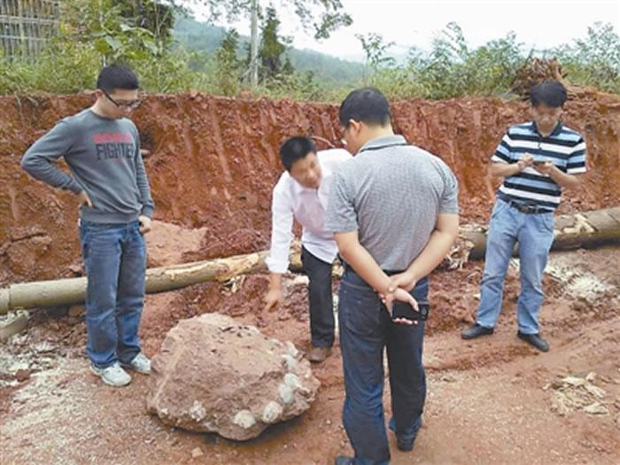 9日上午,赣州市章贡区沙河镇河头村一工地发现一些化石。有人认出是恐龙蛋化石,欲出2000元买走这些恐龙蛋化石。河头村村干部及时赶到,将恐龙蛋化石留下。
