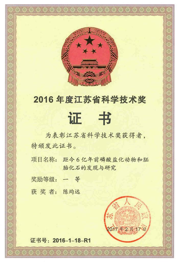 (化石网报道)据中国科学院南京地质古生物研究所:2月24日上午,2016年度江苏省科学技术奖励大会在南京隆重召开,江苏省委书记、省人大常委会主任李强,省委副书记、省长石泰峰等领导出席大会并向获奖代表颁奖。由中国科学院南京地质古生物研究所陈均远研究员等人完成的项目《距今6亿年前磷酸盐化动物和胚胎化石的发现与研究》荣获2016年度江苏省科学技术奖一等奖。