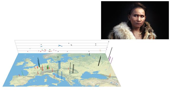 通过分析距今7千年至4.5万年的人群个体基因组数据,付巧妹团队详实地绘制出冰河时代欧亚人群的遗传谱图。他们研究发现,末次冰期结束后(1.4万年)的第一次强烈变暖事件对欧洲人群结构产生影响,在此前很长的时间内,冰河时期的欧洲人是暗色皮肤和棕色眼睛,一直到1.4万年前后蓝色眼睛开始大量出现,而白色的皮肤是在7千年前后才出现。该项目重写了欧洲最早的现代人类历史。
