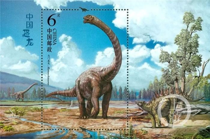 《中国恐龙》特种邮票,将7种曾经生活在我国境内的恐龙收入其中,合川马门溪龙是单独的小型张。