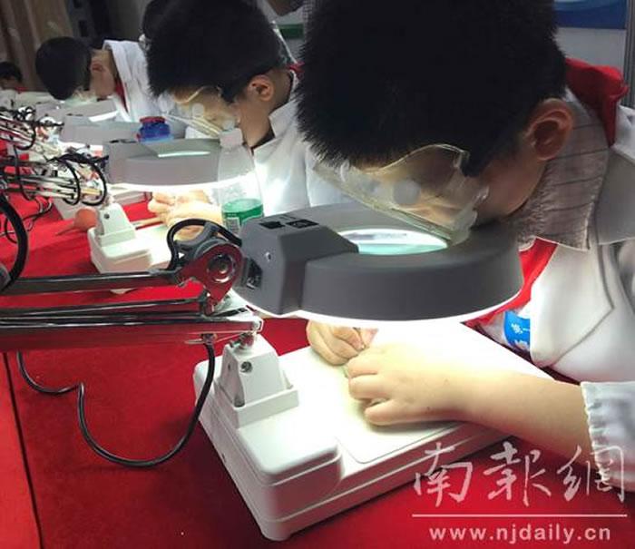 江苏科技馆里小科学爱好者动手修复4.7亿年前化石