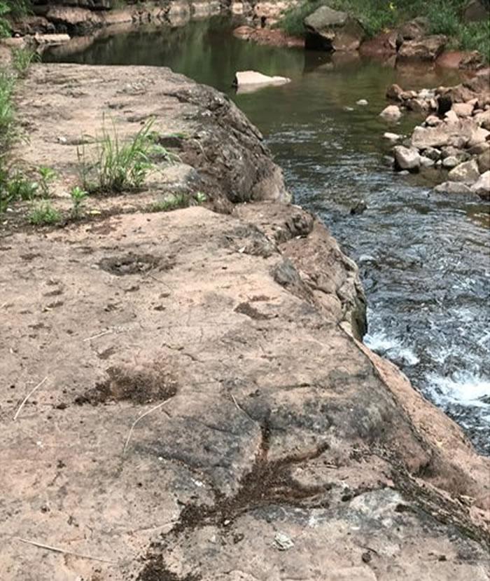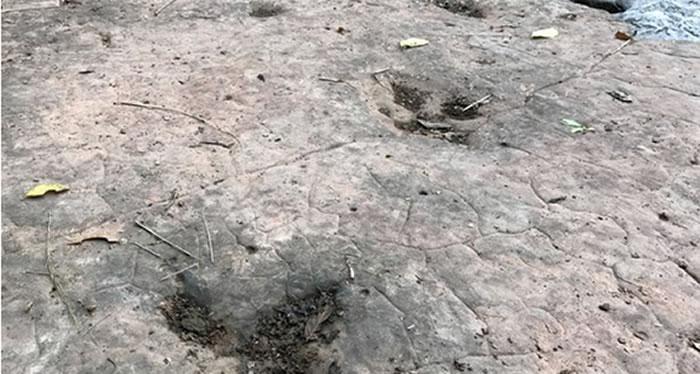 贵州习水县河边疑似发现60多枚恐龙脚印化石