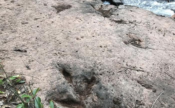 印痕共有67个,分为大小两种,最小的长度15公分,最大的长42公分。以河流为参照,“ 脚趾 ” 方向分别指向上、下游。据此前初步测量,印痕间的距离接近,最清晰的两个指向河流下游的 “ 大脚印 ”,距离是1米至1.23米之间。