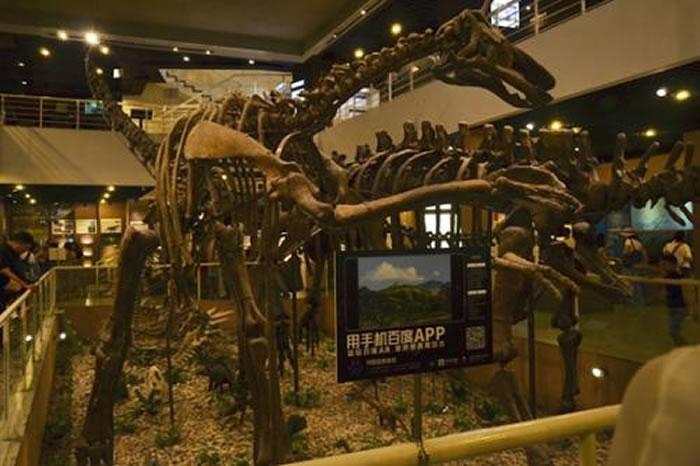 逛中国古动物馆时可以随时用手机百度APP召唤AR恐龙