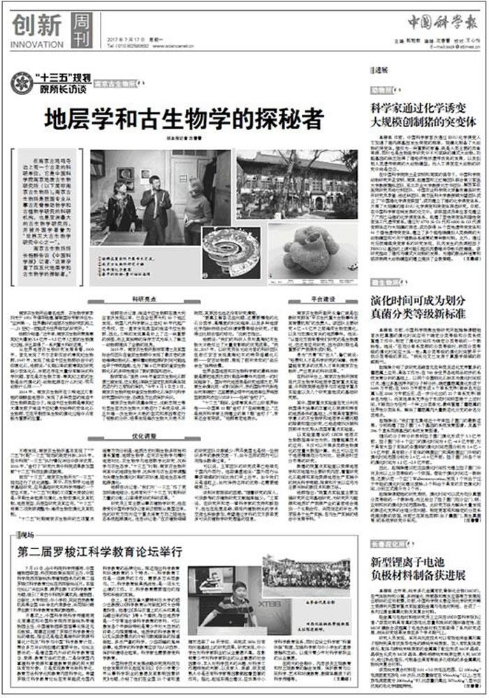 在科研平台上,南京古生物所拥有现代古生物学和地层学国家重点实验室、中科院资源地层学与古地理学重点实验室以及几个研究室组成的基础研究部。