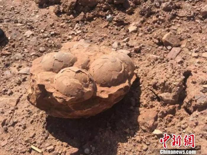 7月14日,一施工单位在江山市贺村镇陈塘边村里安山发现一暗红色石块,内嵌5枚灰红色椭圆状石头,疑似恐龙蛋。江山市文化文物部门接到消息后,立即派专家前往工地考察,确认为恐龙蛋。