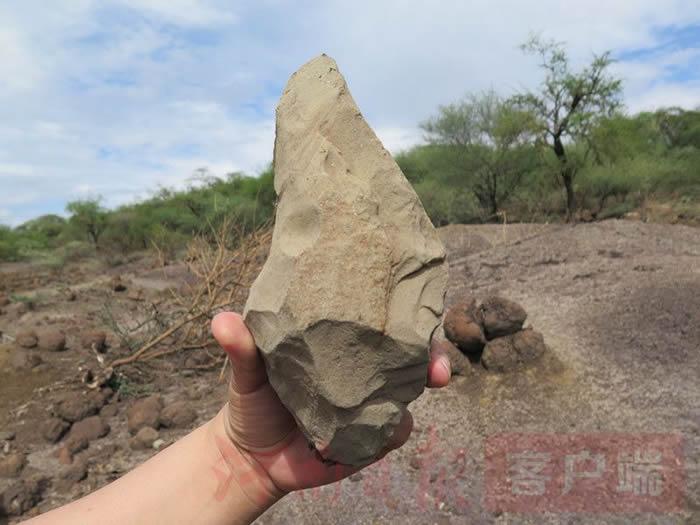 今年上半年,中国考古队已经在遗址区进行了前期调查,采集了40余件石制品,包括手镐、手斧、刮削器和勒瓦娄瓦石核、石片等。石制品和动物化石埋藏于上部火山灰层中,属旧石器时代的桑戈文化,是过渡阶段的旧石器文化,已有的年代证据显示,该石制品技术体系出现在距今20-30万年之间。