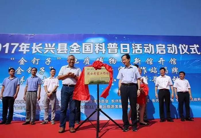 (化石网报道)据中国科学院南京地质古生物研究所:9月18日,在2017年全国科普日到来之际,中国科学院南京地质古生物研究所沈树忠院士在浙江长兴参加了“金钉子”地质博物馆新馆开馆仪式,并为长兴“金钉子”市级院士专家工作站揭牌。
