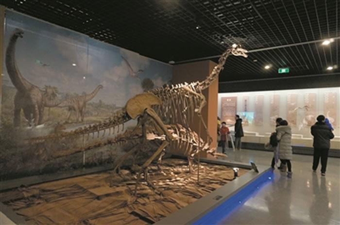 (化石网报道)据金华日报(叶骏):体长约15.6米、高约5米的东阳龙,善于奔跑、1.5米长的“迷你恐龙”天台越龙,身长近20米、浙江发现最大的礼贤江山龙,还有大小不一、形状各异的恐龙蛋化石,不同恐龙的骨化石等……1月28日下午,在金华市博物馆,前来参观的朋友仿佛回到了史前“恐龙横行”的世界。