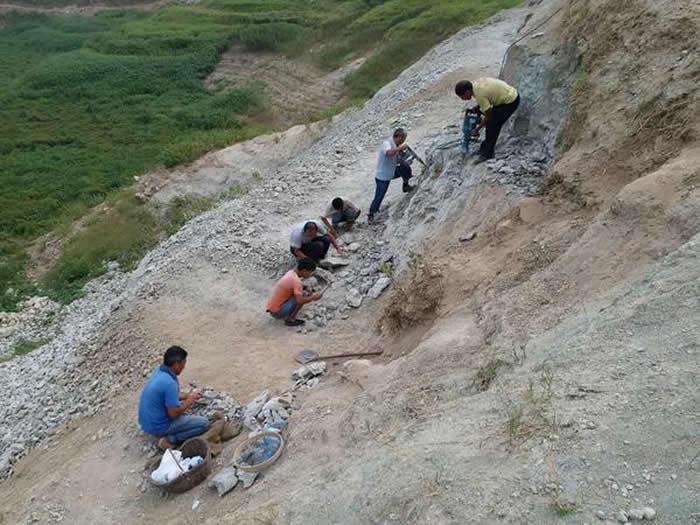 8月31日,河南地质博物馆馆长徐莉、美国自然历史博物馆孟津等一行来到上河曙猿遗址,对新发现的化石点进行察看,并对地层岩石化石的辨别与分离进行指导示范。而当地发现如此丰富的化石,也让专家们惊叹不已。