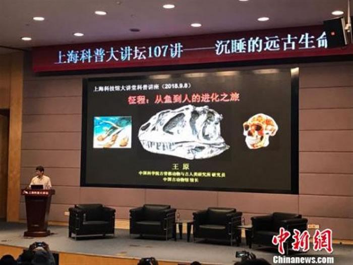 (化石网报道)据中新网上海9月8日电(郑莹莹):“从鱼到人的进化之旅”、“恐龙的物种档案”……9月8日,上海科普大讲坛迎来新学年“开学第一讲”第107期,聚焦“沉睡的远古生命”,邀请到中国古生物馆馆长、中国科学院古脊椎动物与古人类研究所研究员王原,重庆自然博物馆馆长、古生物学博士、研究员欧阳辉以及中国地质大学教授邢立达,一起畅谈古生物趣闻,分享古生物学研究领域的丰富成果。