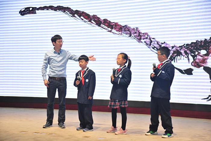 开幕式后,中国古动物馆王原馆长在报告厅为太原师范学院附属中学、太原市童乐双语学校、太原市实验小学近300位师生做了《中国的恐龙》科普报告。现场气氛热烈,并有6万多观众收看了《山西晚报》对讲座的现场网络直播。