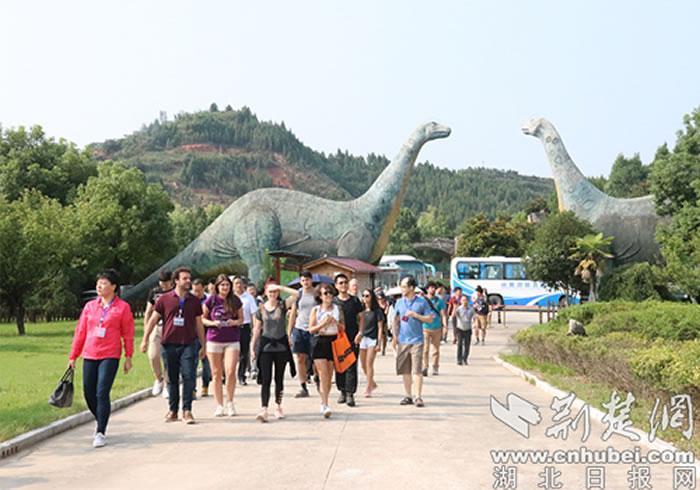 8月19日,来自国内外的专家学者在湖北省十堰市郧阳区青龙山国家地质公园内参观。(通讯员 供图)