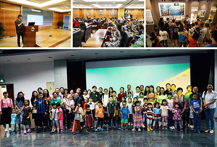 报告结束后,大家来到期待已久的中国古动物馆。在观看了中国古动物馆精心准备的专场3D电影《白垩纪公园》后,大家在中国古动物馆孔明智和顾霞两位优秀科普讲师带领下参观了博物馆,看到了亚洲最大的恐龙马门溪龙、被称为“中国第一龙”的许氏禄丰龙、以及曾被编入中国小学语文课本的古动物黄河象骨架等在内的珍贵展品。通过这次讲解,家长和孩子们都深深的记住了长有羽毛的恐龙-小盗龙、世界最早具有角质喙的古鸟类-孔子鸟、世界首枚翼龙胚胎等等这些在世界上引起轰动的珍稀标本。
