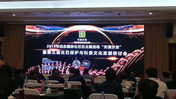 本次会议召开恰逢10月11日国际化石日,中国古生物学会在开幕式上举办了2019年国际化石日中国主场纪念活动。开幕式当天,与会嘉宾一行参观了天演博物馆,并为天演化石保护研究中心落成揭幕。大会于10月13日安排了全天的学术报告和科普报告,来自古生物领域的19位专家、学者分别从古生物保护、古生物科普教育、野生动植物标本制作与维护、文创产品开发与应用、科普文化的发展与创新等多个角度展开研讨,以进一步唤起人们对古生物的热爱保护和对化石文化的推广,推动古生物科普教育蓬勃发展。