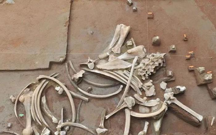 2014年度,在第1地点第8层及以下发掘揭露并提取了考古地层中埋藏的基本完整的披毛犀骨骼化石;经统计,该披毛犀骨架一共含骨骼部位160件,包括完整头骨、下颌骨、舌骨等;这是首次在考古遗址发掘揭露的完整披毛犀骨架化石,而且具有清楚的埋藏地层和发掘数据,堪称“中国考古地层中出土最完整的晚更新世披毛犀骨架化石”。此外,这具披毛犀骨架还包括一具“世界范围内首次发现的完整披毛犀肋软骨化石”。披毛犀在距今1万年前已经灭绝,曾是旧石器时代人类的狩猎对象。
