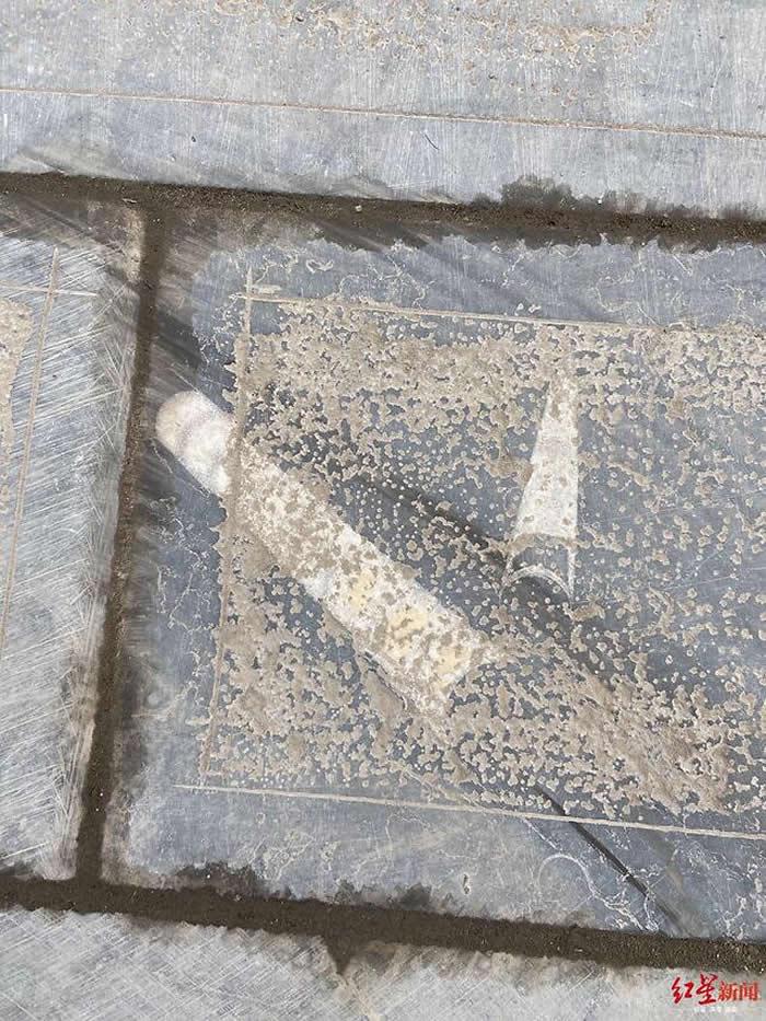 4月2日,华希昆虫博物馆馆长赵力收到一位网友的求助:“问一下远古竹节虫化石。”4月14日,赵力收到网友发来的照片。照片上是一段人行道,上面可以看到清晰的白色图案,有的圆圆的,有的似锥形。