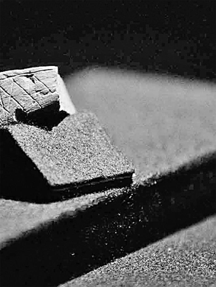 在南非的布隆伯斯洞穴,考古学家发现了一块7.4万年前的赭石。石块的表面经过打磨后,用一把尖锐的石制工具雕刻了抽象图案。这是已知最古老的符号表达遗迹之一。