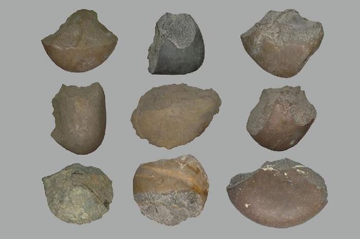 该遗址中打制石器居多,均系砾石为原料加工而成,部分亦为磨制石器,数量相当丰富。其文化特征是石核和石片形制原始,石核多利用自然台面,石片形态不规整。加工方式多以复向修理为主,向背面加工次之。大多数石器均系用陡向或垂直加工,故钝刃者多。石器类型简单,有边刮器、端刮器、尖状器和砍器(包括砍砸器、砍器、手锛、手斧)等。就刃部而言,单刃石器不多,以复刃石器占主导地位。就大小而言,以长6厘米以上的大型石器为主体。