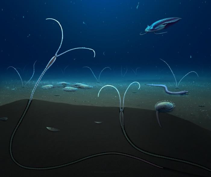 (化石网报道)据六盘水师范学院生物科学与技术学院:北京时间2020年6月11日17:00时,国际著名科学杂志《自然》在线发表了六盘水师范学院生物科学与技术学院教师陈红副教授及其所在团队的最新研究成果,研究人员在中国云南省东部富含软躯体化石保存的寒武纪地层里发现了一个新的多毛类动物,距今约5.14亿年前。研究表明该动物营管居固着生活,属于现生多毛纲的长手沙虫科(Magelonidae),是目前已知的现生环节动物支系的最早化石记录,为了解环节动物的早期演化提供了重要证据,也揭示了寒武纪环节动物的生态和形态多样性。