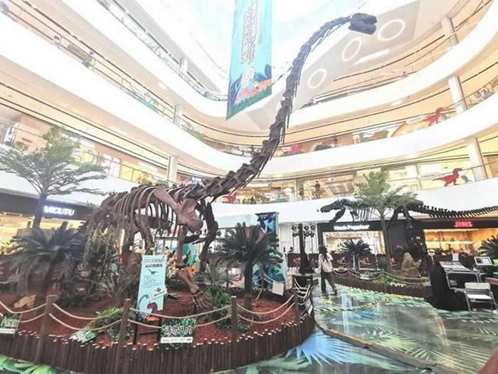 (化石网整理)据北京晚报(马婧):仰望高大的恐龙骨架、欣赏来自亿万年前的古生物标本、体验化石修复的乐趣……昨天,一场大型恐龙展在门头沟的北京长安天街亮相,这是该购物中心携手中国古动物馆打造的京西首场大型恐龙展。大量秘藏于博物馆的古动物化石、生物复原模型、珍贵图片悉数亮相,不仅助推线下实体商业的复苏,也为学生们提供了暑期学习科普知识的场所。