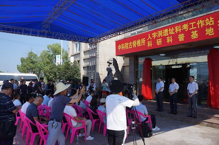 (化石网整理)据安徽科技报(俞乃思):8月18日上午,“中科院古脊椎所人字洞科考工作站”和“中科院古脊椎所安徽繁昌科研科普基地”揭牌仪式在安徽芜湖市繁昌县孙村镇红花山集团总部举行。