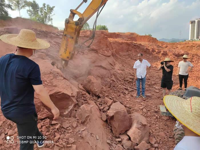 河源恐龙博物馆负责人介绍,今年5月下旬,源城区城南派出所和江东新区临江派出所,先后接到当地群众报警:位于江东新区临江镇联新村的一处正在施工开挖的山坡上,疑似挖出一批零碎的恐龙蛋化石,有村民、民工在现场捡拾。
