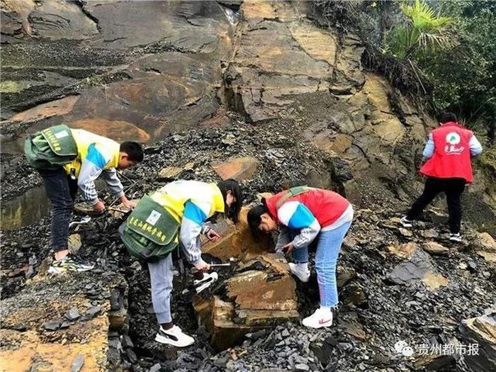 11月3日,来自武汉地质大学及贵州旅游地学研究院的地质专家,齐聚遵义市桐梓县尧龙山镇,找寻远古的古生物印记。