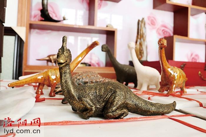 “这个是汝阳黄河巨龙,这个是巨型汝阳龙……”不善言辞的杜秉立对于这些恐龙却如数家珍。屋里大大小小的恐龙模型数不胜数,铜制的、陶瓷烧制的,风格各异,种类繁多。