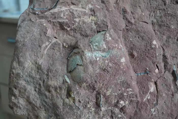 “可以看到,蛋片散落在岩石中,并未形成蛋窝状,这是因为在流水的作用下,蛋片发生了位移。”王强表示,化石的形态对研究其原产地的古地理环境有指导意义。
