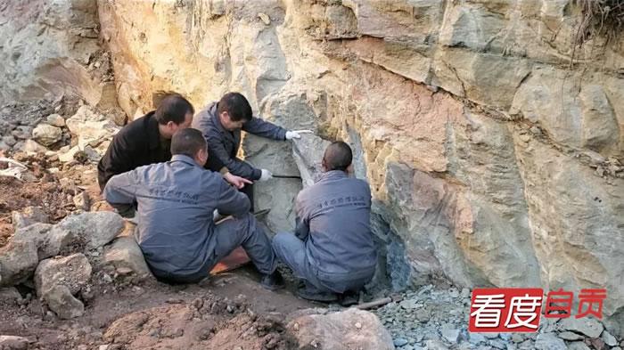国家古生物化石专家委员会委员、自贡恐龙博物馆研究员彭光照,自贡恐龙博物馆研究部副主任江山等专家在现场参与发掘和研究工作。记者看到工作人员先铲掉旁边的泥土,把岩层露出来,然后用电镐在化石周边进行开凿,为了保护化石的完整性,在处理接近化石的围岩时,进行人工清理。