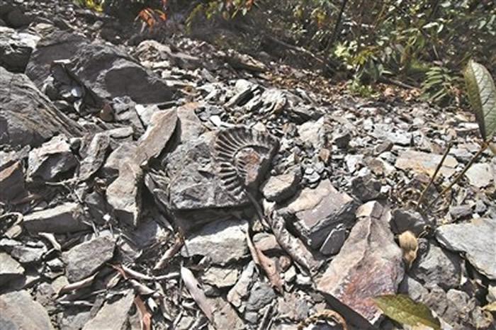 广东河源万绿湖畔发现菊石化石群 此前曾发现直径达40厘米的“菊石”