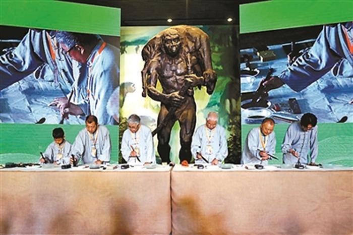 百名书画艺术家代表现场挥毫泼墨,描绘周口店遗址的百年变迁