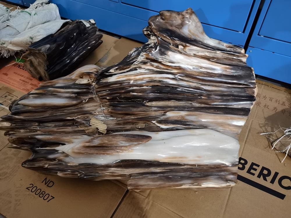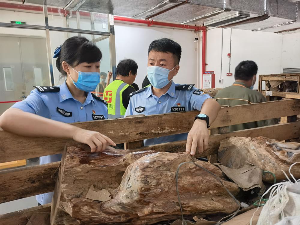 黄埔海关向广东省自然资源厅移交罚没的12吨硅化木