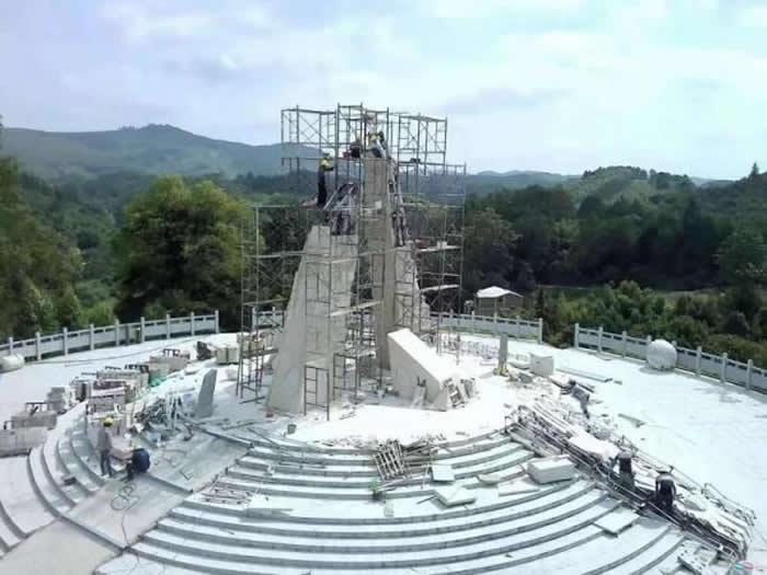 按照设计方案,在“金字塔”上端,两条巨大的石柱托起一个地球造型,另外在每条石柱的柱身上,都用浮雕形式,刻画出岩石断层和古生物形象,并通过这些元素,来表现全球地质年代的演变过程。另外在“金字塔”周边,还将布置9个圆形石柱,分别代表中国取得的9枚“金钉子”,